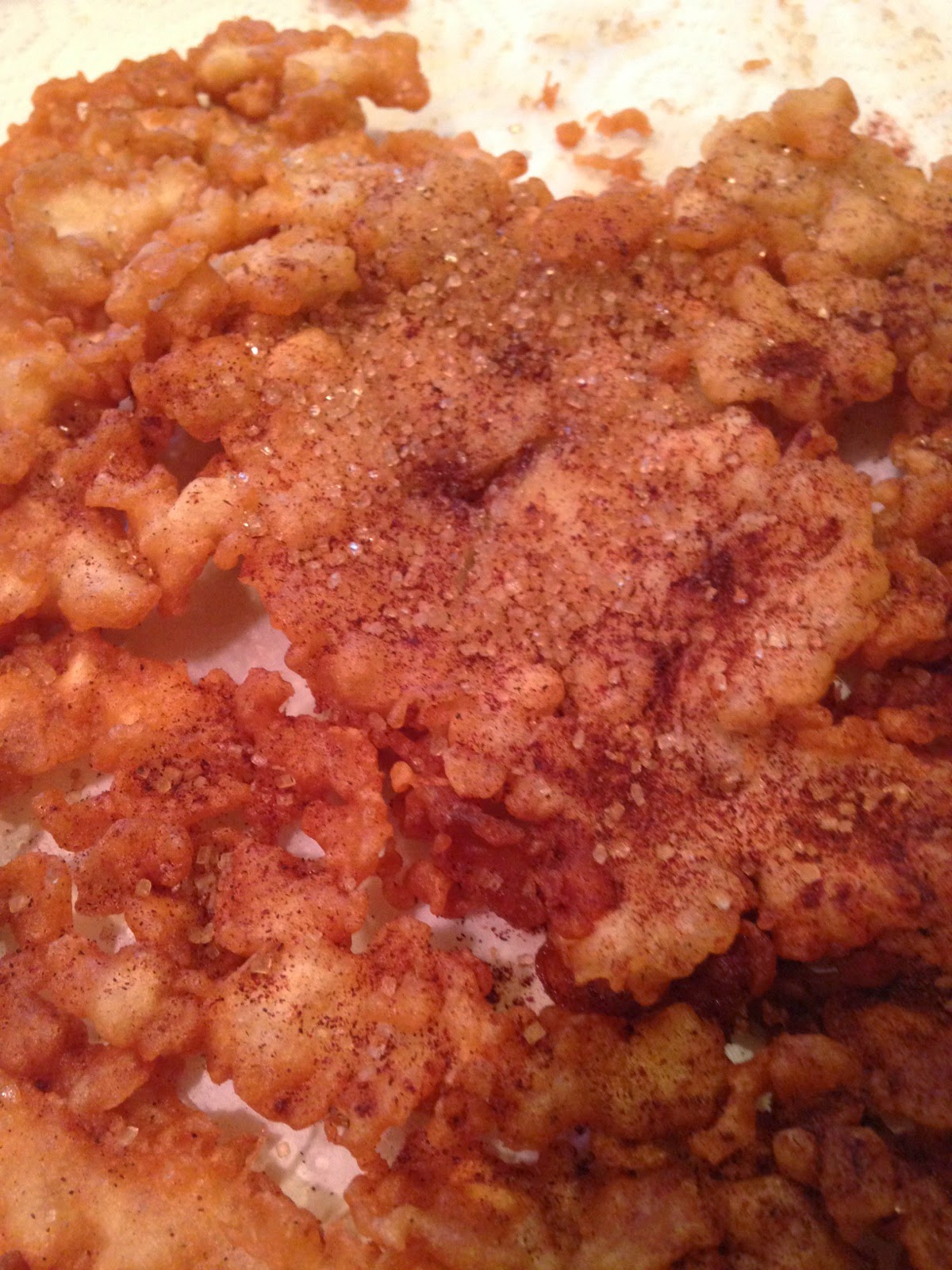 You are looking at the surface of a 16th century crespe. More like a funnel cake than a modern crepe, and I would not have believed the recipe had I not cooked it. A pound of butter clarified, then a batter of egg whites, white wine and cake flour. Drizzled into the fat through a funnel. Sprinkled with cinnamon and sugar. They are indeed crisp!