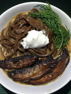 Then they went into a lamb stock with kale. Actually really chewy, and a great noodle. But I noticed afterwards a slimy texture in my mouth and a little lye-burn on my tongue and palate. It's still a little burnt a full 12 hours later. So I do not recommend putting this in the dough.
