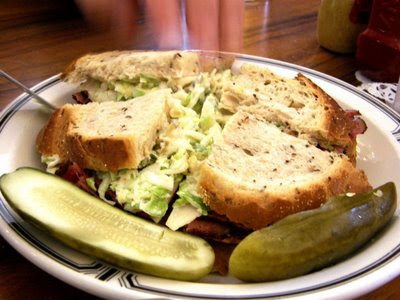 Ok, it was indeed pretty damned amazing. But here is what I intend to do differently. I'm not sure if the meat was smoked or not, but I think it should be. This was not terribly different from the corned beef, which as a sandwich was actually superior. I am a toast freak, and I love sauerkraut. So that's what make that sandwich work. But if you took pastrami, on toasted rye, a little more sour and not so soft, and left off the cole slaw, added mustard instead. Nothing else. Then I think it could rank up there among the celestial blessed sandwiches. Samachisa bootifa, samachisa fine, I like samachis, I eat them all the time. I eat them for my dinner.